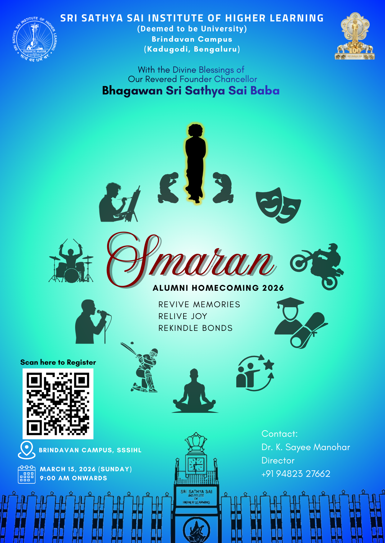 On Sunday, 15th March 2026 (9.00 am), we are blessed to host a Men’s Alumni Meet (All Programmes across the men campuses) at the Brindavan Campus. It will be a day lovingly designed to help you relive your student days in their purest form and rekindle the beautiful bond between you, our beloved Institute, and Swami.